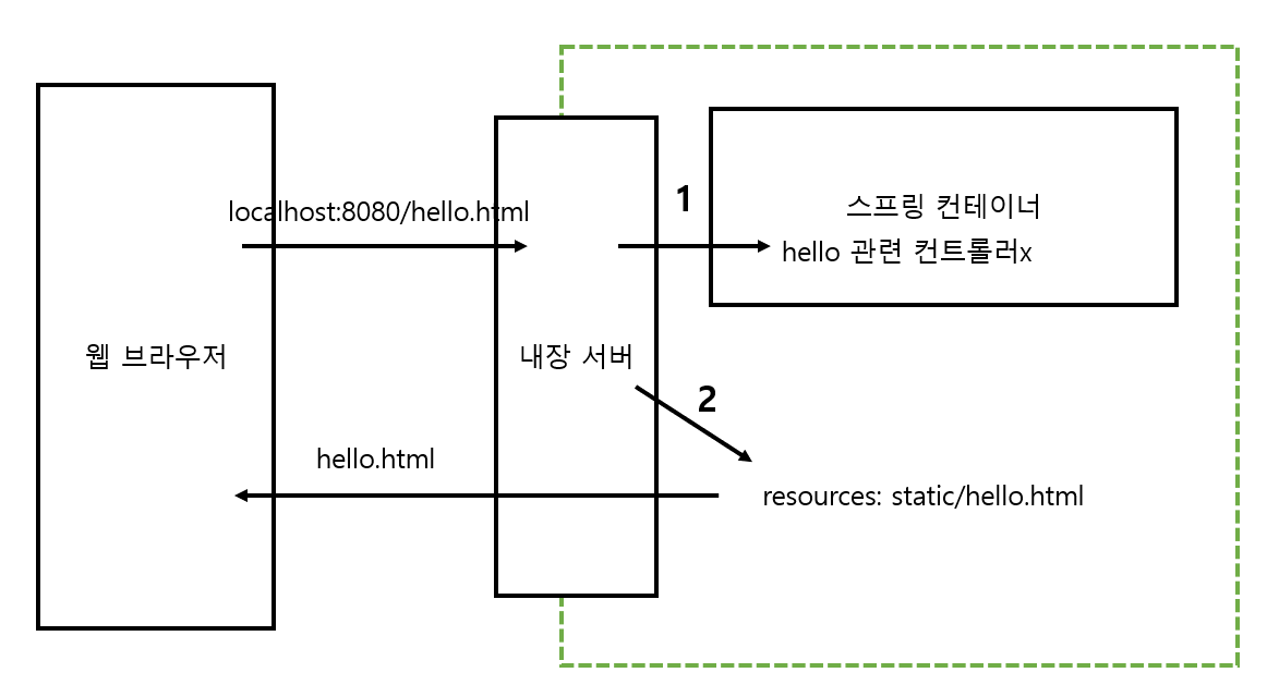 기본적으로 스프링부트는 클래스 경로 또는 ServletContext의 루트에서 /static (or /public or /META_INF/resources or /resources) 이라는 디렉토리로부터 정적 컨텐츠(Static Content)를 제공한다.